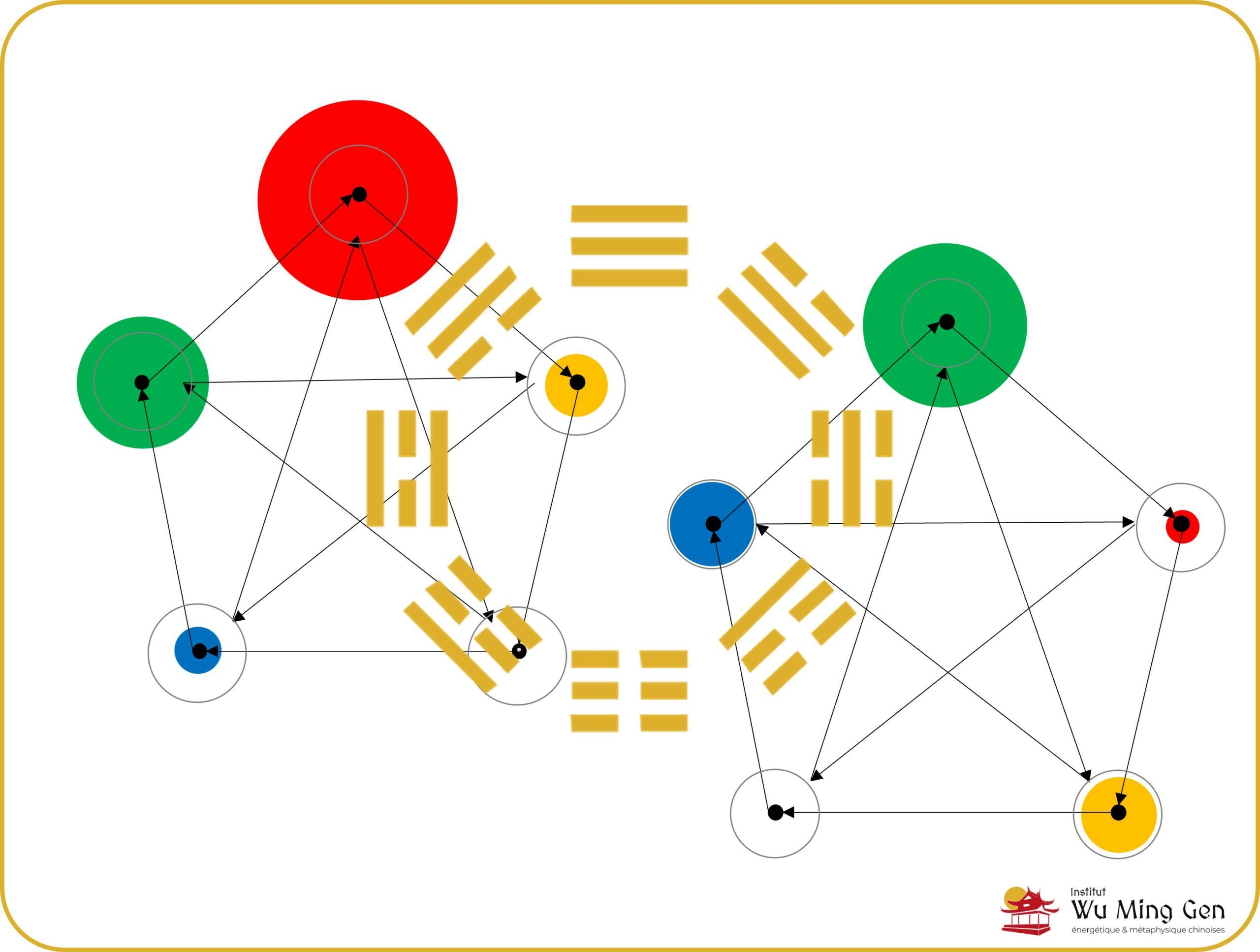 Cette dynamique Yin Yang permet d’observer les mouvements contraires, ou plutôt complémentaires. Des caractères contraires, mais non séparés car animés par un engendrement mutuel.