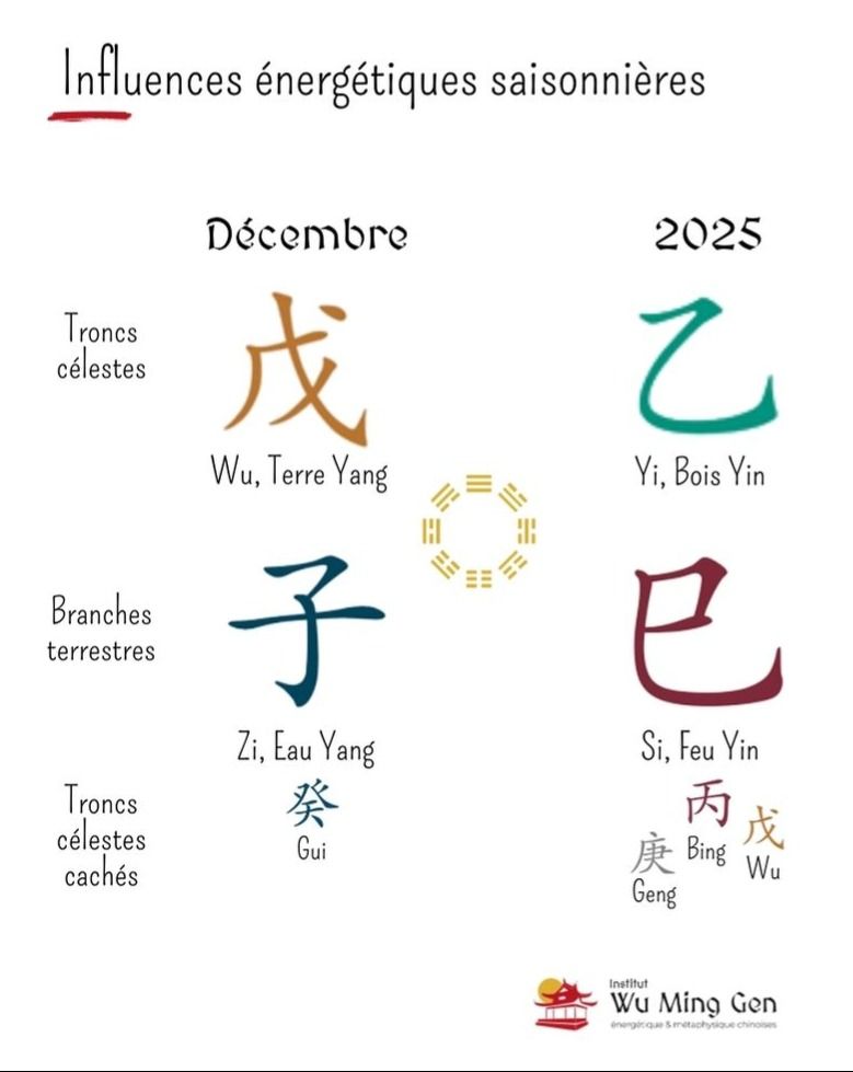 Chaque mois et année apportent une influence énergétique saisonnière. Au mois de novembre 2025, nous sommes sous l’influence de l’énergie de l’Eau Yin (Hai).